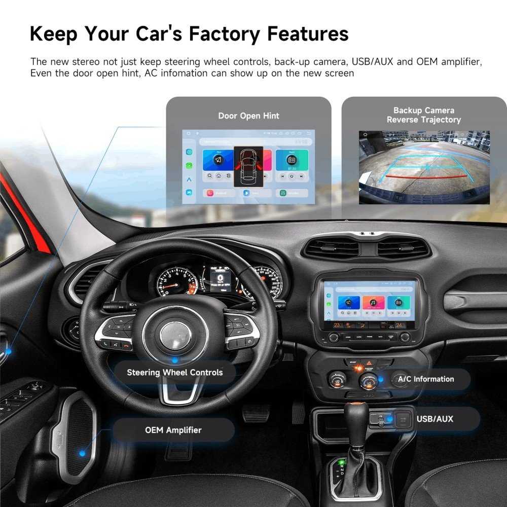 Vehicle Settings Retention: Unlike cheap universal radios, this unit allows you to adjust vehicle settings (Door Locks, Lights, Safety Sensors) directly from the new screen.