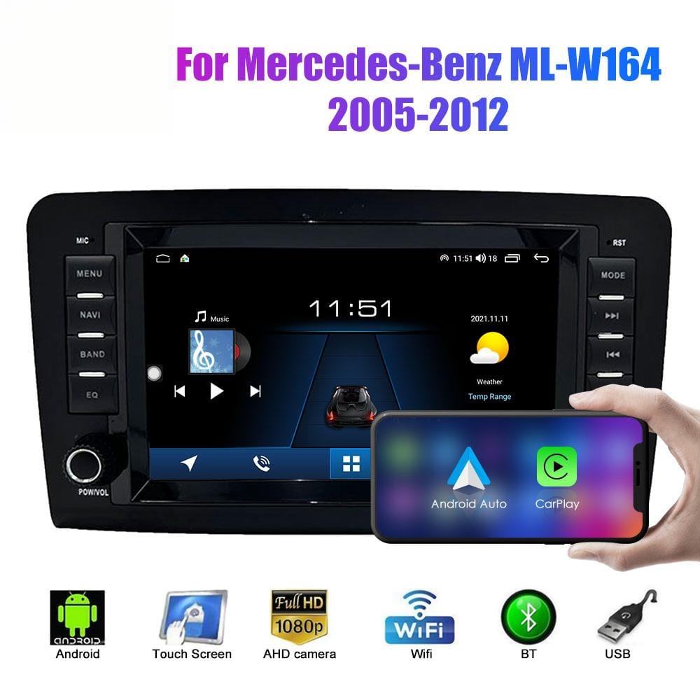 Upgrade your Mercedes ML-Class W164 with this Android Radio. Features Wireless CarPlay and high-speed UFS storage in a perfect 8-inch OEM-style fit. Enjoy faster performance and modern navigation. More details below.