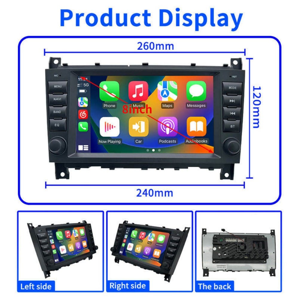 Upgrade your Mercedes W203 / W209 / W463 with this Android Radio. Features Wireless CarPlay and high-speed UFS storage in a perfect 8″ or 7″ OEM-style fit. Enjoy faster performance and modern navigation. More details below.