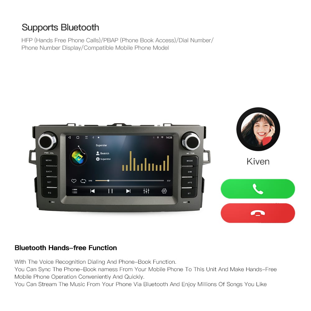 An original car style 7-inch Android car stereo upgrade for Toyota Auris 2006–2012, replacing the factory car radio while keeping the OEM dashboard look. More details can be found below the description.